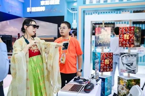 当科技与艺术碰撞,视听产业便有了更丰富的创作可能与文化内涵。展会围绕“数智视听”主题设置的aigc互动区,集中展示了技术赋能艺术创作的创新成果。以三星堆古蜀文明为原型的《三星堆:未来启示录》,生动还原青铜神鸟、桑蚕、缫丝织造等古蜀文化元素;以《山海经》为灵感的《山海奇镜之劈波斩浪》,借助ai技术复现上古神话中的神怪异兽与奇花异草;《遇见仓颉:我在部落刻龟甲》则通过仓颉造字的故事,展现中华文明的传承与发展。借助人工智能技术突破传统实拍的场景、成本限制,将三星堆文物、《山海经》神话等传统文化元素“复活”于屏幕之上,让古老文化以更鲜活、更具想象力的形式呈现,既保留文化内核,又赋予其符合当代审美的视听表达。