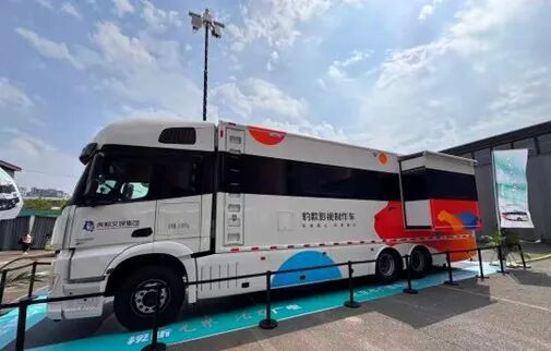 室外展区由虎鲸文娱集团自主研发的豹款影视制作车,通过融合5g传输、ai辅助拍摄、云端协同制作、绿色能源供电等多项前沿技术,实现边拍边剪边审的全流程现场制作。