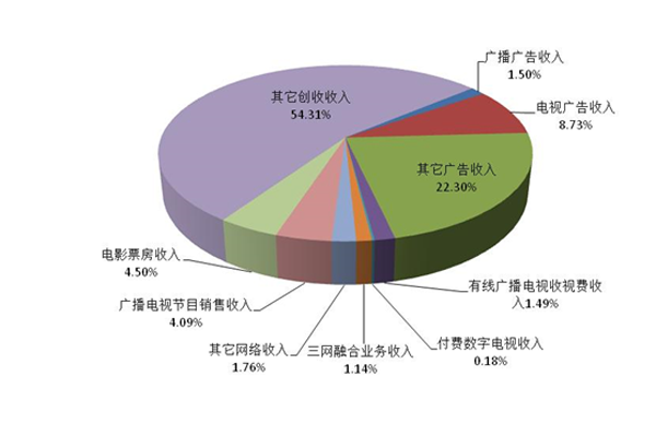 截止到8月底,北京市广播影视累计创收总收入为479.88亿元,比去年同期增加138.39亿元,同比增长40.53%。其中,广告收入为156.09亿元,占创收总收入的32.53%,比去年同期增加31.36亿元,增长25.14%;广播电视节目销售收入19.64亿元,占创收总收入的4.09%,比去年同期减少11.38亿元,同比下降36.69%;电影票房收入为21.6亿元,占创收总收入的4.5%,比去年同期增加0.75亿元,同比增长3.6%。