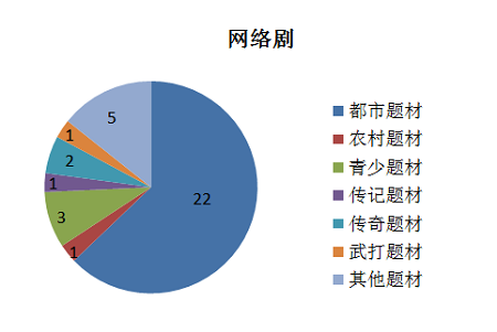 按题材划分,35部880集网络剧中,都市题材22部524集,农村题材1部24集,青少题材3部68集,传记题材1部72集,传奇题材2部52集,武打题材1部24集,其它题材5部116集。
