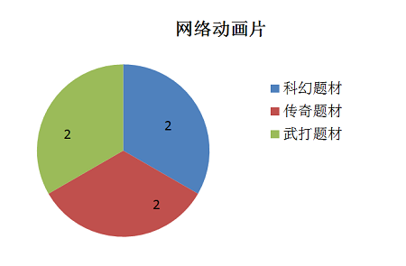 6部61集网络动画片中,科幻题材2部25集,传奇题材2部24集,武打题材2部12集。