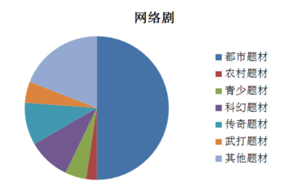 按题材划分,42部896集网络剧中,都市题材21部433集,农村题材1部34集,青少题材2部54集,科幻题材4部72集,传奇题材4部90集,武打题材2部54集,其它题材8部159集。