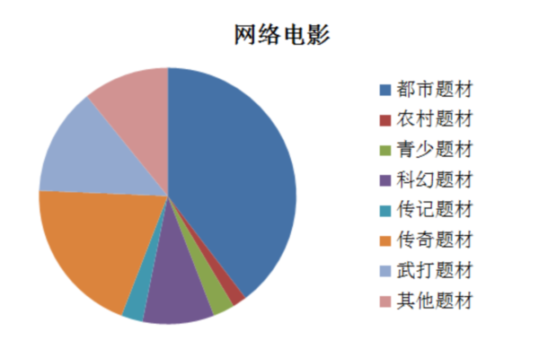111部网络电影中,都市题材44部,农村题材2部,青少题材3部,科幻题材10部,传记题材3部,传奇题材22部,武打题材15部,其它题材12部。